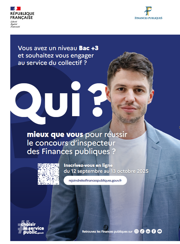 Si vous détenez le baccalauréat ou un diplôme Bac +3 et que les services des Finances publiques vous intéressent, n'hésitez pas à vous inscrire aux concours de contrôleur, technicien-géomètre ou inspecteur.