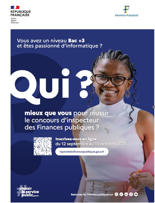 A noter que des concours informatiques sont également ouverts pour devenir inspecteur analyste ou PSE (programmeur de système d'exploitation) et que l'inscription pour le concours de contrôleur programmeur sera organisée début 2026.