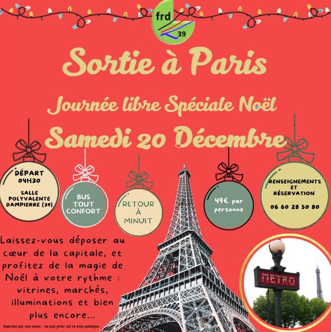 Sortie à Paris - 20 décembre avec le Foyer Rural Dampierre Jura !