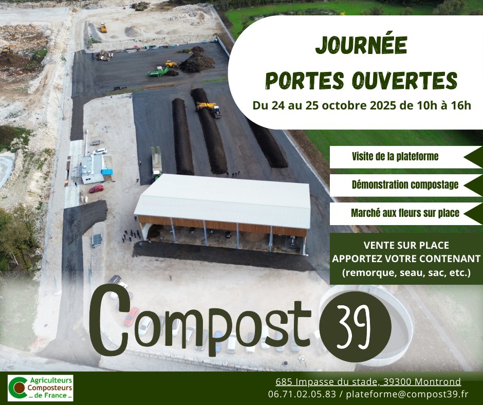 j’ai le plaisir de vous inviter aux portes ouvertes de notre plateforme de valorisation des déchets verts Compost 39, qui se tiendront :