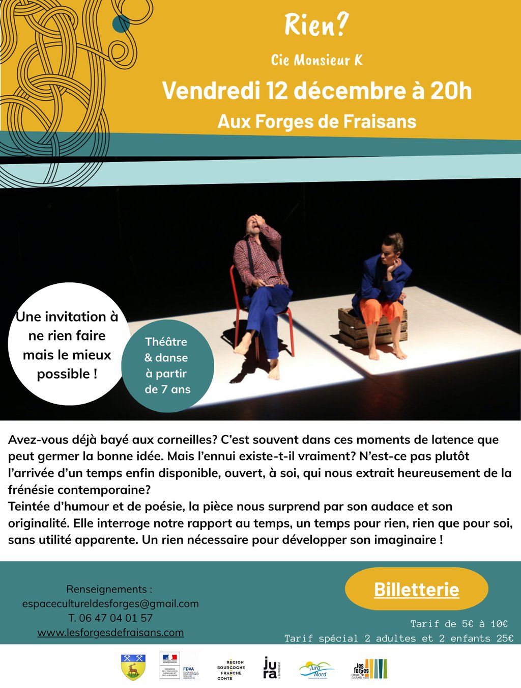 Le prochain spectacle aux forges de Fraisans est : Rien? de la Cie Monsieur K