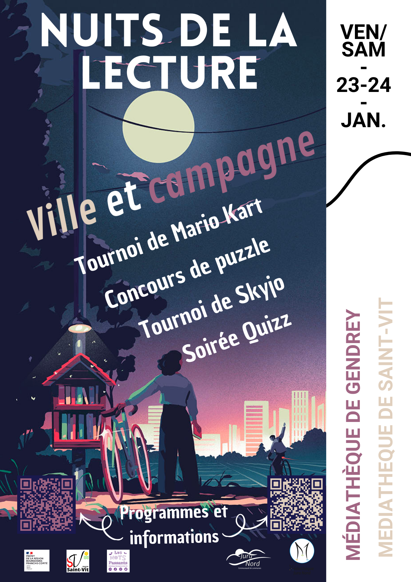 VENDREDI 23 ET SAMEDI 24 janvier, Nuits de la lecture dans les médiathèques Jura Nord et Saint-Vit